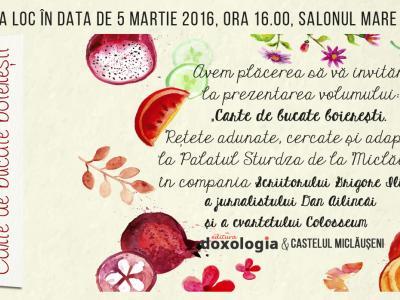 Primăvara sosește la Miclăușeni odată cu lansarea volumului: „Carte de bucate boierești. Rețete adunate, cercate și adaptate la Palatul Sturdza de...