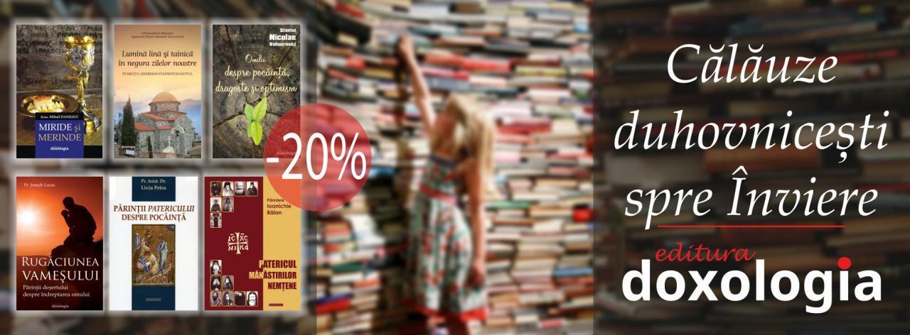 În perioada Postului Mare, Editura Doxologia a Mitropoliei Moldovei şi Bucovinei vă propune o serie de cărți de o mare intensitate duhovnicească, de un real şi imediat folos pe calea urcuşului spre Înviere, cu 20% reducere.