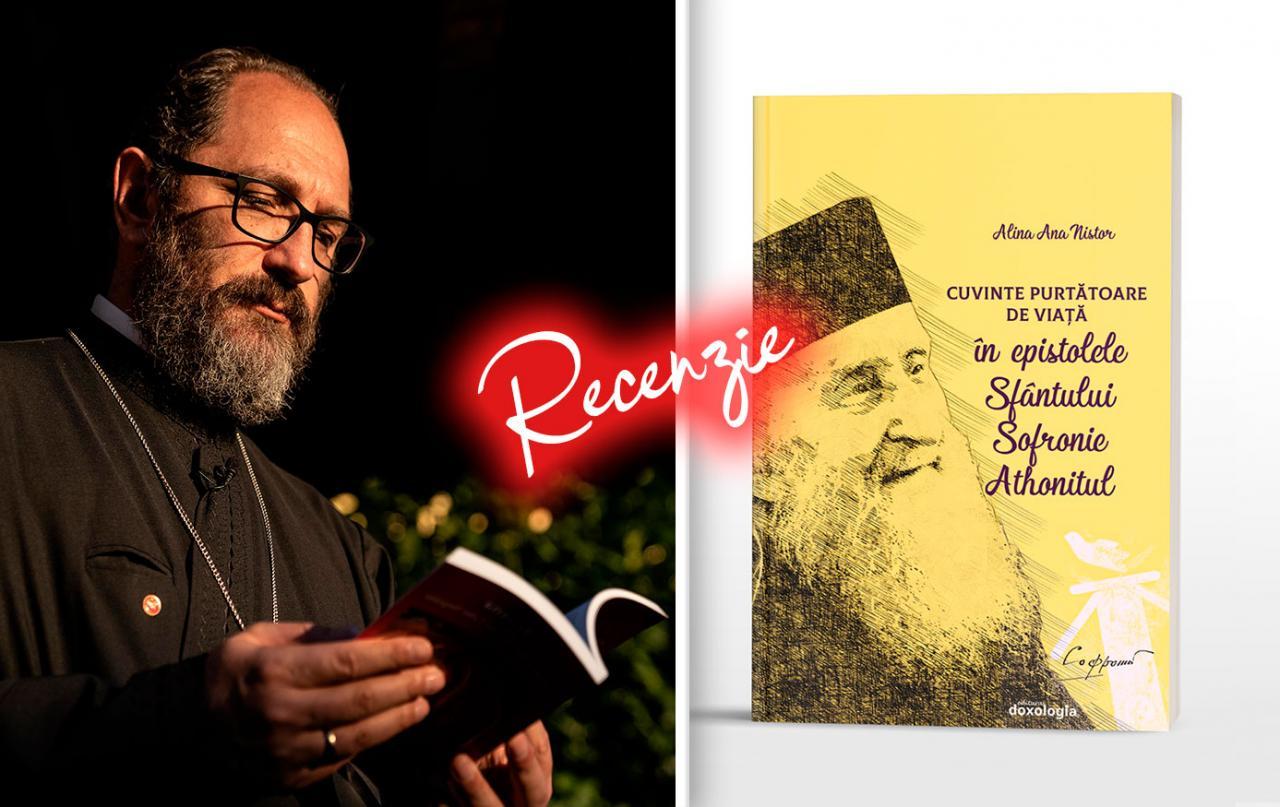 Un adânc cunoscător al firii umane și un atent descoperitor al lui Dumnezeu oamenilor, Părintele Sofronie se vădește, chiar și în epistolele sale, un om de dialog și comuniune, un atent cunoscător al Tainelor lui Dumnezeu. Scria într-un tonus de om care vorbește, atent la finalitatea practică a demersurilor sale de lămurire a unor gânduri, idei ori ispite. Știa valoarea veșnică a celor mărturisite și că tot ce transmitea celorlalți rămânea pe veșnicie ancorat în golful inimii lor – hrană de preț la vreme de furtună sufletească. Așa îl descoperim și noi. La vreme de ispită și răstignire, rugător pentru sufletul nostru, osârduitor și liniștitor cugetător la mântuirea sufletelor noastre. În cuvinte cântărite și alese, Părintele propune o evaluare a vieților noastre în tonul unei doxologii, unei preamăriri continue a lui Dumnezeu. Probabil și din acest motiv, an după an, tot mai mulți teologi – autoarea volumului acestuia prezentat de noi e parte din acest fenomen – se apropie de învățătura sa liniștitoare și destupătoare de izvoare, ale cărei nervuri urcă până în epoca primară a Bisericii. Epoca Evangheliei vii și a Părinților aflați sub aripa de Duh Sfânt a Rusaliilor. Volumul dispune de un scurt Cuvânt Înainte (semnat de Părintele Gheorghe Popa, pp. 7-8) și o Bibliografie (pp. 135- 138) și reprezintă finalizarea unei lucrări de Disertație în cadrul Masterului în Teologie.