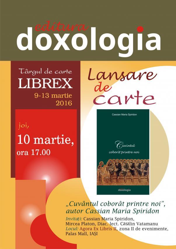 Editura Doxologia își așteaptă vizitatorii la standul său de la nivelul 0 din Atrium, Palas Mall, în cadrul Târgului Internațional de Carte LIBREX „Primăvara cărților la Iași”, în perioada 9 – 13 martie a.c., între orele 10.00 – 22.00 (miercuri - sâmbătă) și 10.00 – 17.00 (duminică).
