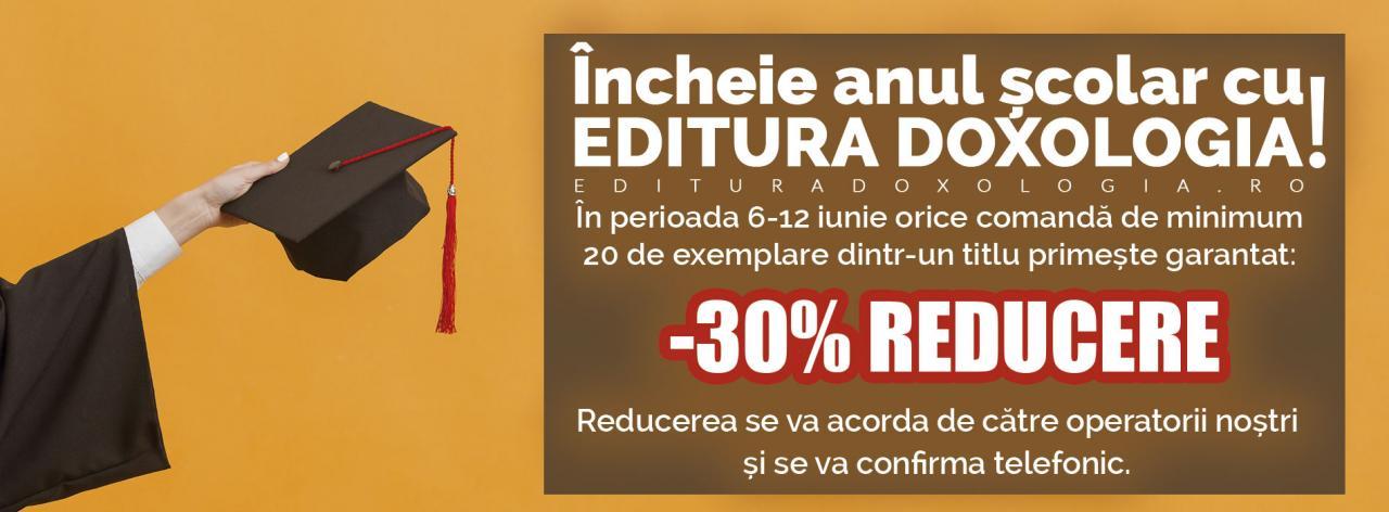 „Încheie anul școlar cu Editura Doxologia” este o campanie menită să vină în întâmpinarea educatorilor și profesorilor care caută să îi premieze cei mai merituoși elevi ai lor. Editura Doxologia oferă cu o gamă numeroasă și diversificată de titluri pentru copii mici și mari, care vor petrece vacanța de vară cu multe jocuri și lecturi aventuroase. Astfel, la fiecare minimum 20 de exemplare comandate , din același titlu, se va aplica o reducere de 30%. Atenție! Reducerea nu se aplică la titlurile deja reduse mai mult de 30%!