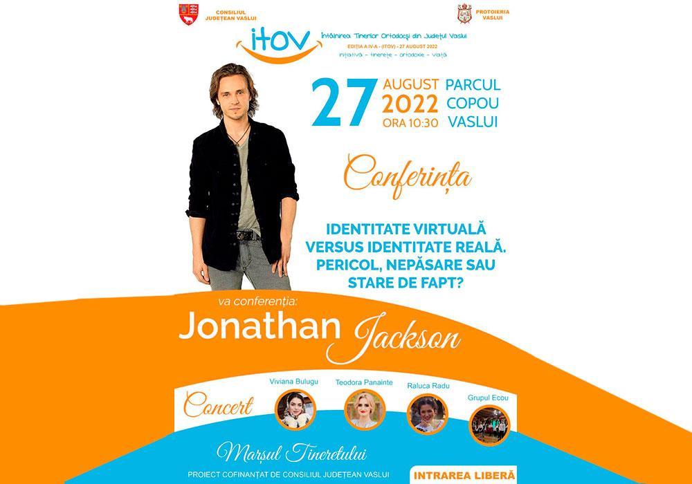 Va urma apoi Conferința susținută de cunoscutul actor și cântăreț de origine americană, câștigător a 5 premii Emmy, convertit la Ortodoxie, Jonathan Jackson (intrarea liberă). Conferința va fi transmisă live pe pagina www.facebook.com/episcopiahusilor.ro.