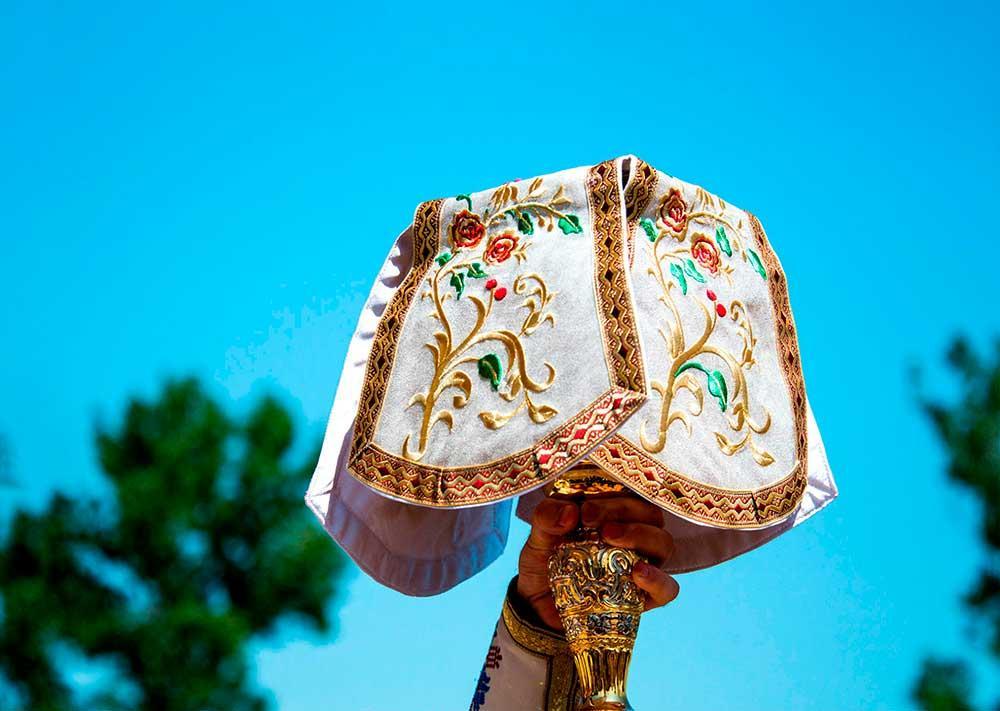 Acestea zicând preotul cel evlavios, a văzut înaintea Sfintei Mese pe Împărăteasa Îngerilor cea Preaslăvită, care avea în brațele ei un prunc, negrăit de frumos, pe Domnul nostru Iisus Hristos și i-a zis lui: „Pruncul acesta este Făcătorul și Ziditorul lumii, Fiul și Cuvântul lui Dumnezeu și om desăvârșit. Pe Acesta L-am zămislit din Duhul Sfânt și L-am născut fără stricăciune, rămânând Fecioară. Acesta a pătimit și a murit pe Cruce ca un om, pentru mântuirea lumii și a înviat și s-a înălțat la ceruri și șade de-a dreapta Tatălui, ca Unul ce este de o ființă cu Dânsul și împreună pe scaun șezător, pentru aceasta iarăși are să vie să judece toată lumea. Acesta și acum, în fiecare zi, pentru milostivirea Lui și pentru multa bunătate, se coboară negrăit și minunat în chipul pâinii și al vinului, pentru multa dragoste pe care o are către voi oamenii și vi se dă spre mâncare și băutură și spre sfințenie a sufletului vostru. Deci pipăie-L pe El și fără de frică Îl cearcă, pentru ca să cunoști cum că este adevărată privirea și nu nălucire, și trup adevărat, cu carne și cu sânge, după cum L-am cunoscut. Și așa se face și pâinea și vinul cu care săvârșiți Sfânta Liturghie. Însă pentru că firea omenească nu poate ca să mănânce carne crudă și să bea sânge, pentru aceasta, prin nepătrunsa Lui înțelepciune, Cel întru tot Milostiv și Atotputernic se schimbă în pâine și în vin, pentru ca să-l primească fiecare cu dorință și cu dragoste. Împărtășește-te dar cu Dânsul, cu evlavie și cu credință, căci cine se împărtășește cu vrednicie cu El, se face părtaș Dumnezeieștii Lui Slave”.