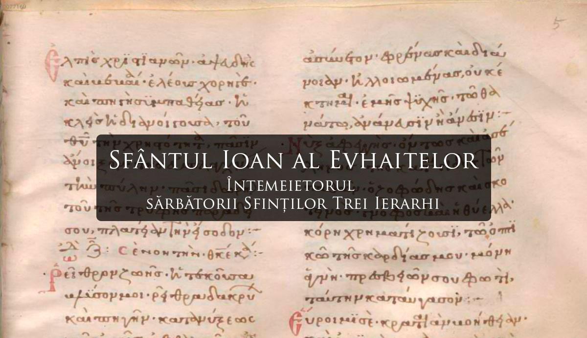 Foarte puțin cunoscut în literatura teologică românească, Sfântul Ioan al Evhaitelor, sau Ioan Mavropous, este un important teolog, poet, umanist bizantin, trăind în secolul al XI-lea, pomenit pe 5 octombrie, în ziua trecerii sale la Domnul. Cel mai cunoscut fapt despre viața sa, și cam singurul menționat până acum în limba română, este aportul său semnificativ la instituirea sărbătorii Sfinților Trei Ierarhi, prăznuiţi până astăzi pe 30 ianuarie.