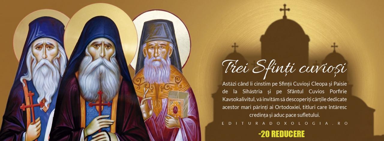 Citește alte articole despre: sfinti, Sfantul Cuvios Paisie de la Sihastria, Sfantul Cuvios Cleopa de la Sihastria, Sfantul Cuvios Porfirie, Sfantul Porfirie Kavsokalivitul, Editura Doxologia